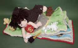 No.116*最終選考 タイトル:きんたろう 作者名:プロジェクト「きんたろう」 元のデザインを どれだけ編み物で再現するかに苦労しました。 ページを開いて舞台にしたり、 立てて背景にしたりして、 人形でお話を作る“絵本”です。