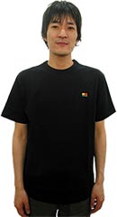 コメント: 大きさは、ジャストフィットっていうか、 肩とかピッタリで、ややタイトな感じ。 かなり痩せてるし、これでもOKだけど、 自分で買うのは、Sにするかもね。 同じくらいの身長でも、 もうちょっと普通の体型の人や、もっと背が高い人は、 Sサイズになると思う。 XSサイズは、わたしより背が低い人なら、 いい感じで着こなせるんじゃないかな。 でもやっぱり、自分のお気に入りのTシャツを ちゃんとものさしで計るのが、大事ですよね。 ※今回着用しているサンプルのXSサイズは、 製品とまったく同じサイズです。 ※ネイビーの色合いは、写真だと分かりにくいんですが、 黒に近い深いキリッとしまった紺色、 とてもいい色ですよ! ![]() コメント: (姿見を見ながら) やっぱり、この刺しゅうが効いてるよねー。 カジュアルなのに、大人っぽい。 大人っぽいのにかわいい。 XSとかSとか、小さいサイズのほうが、ボディに対する 刺しゅうのバランスが、おっきく見えるでしょ? おっきく見えるほうが、かわいさが増して、 女の子にとっては、うれしいんだよね。 ![]() コメント: 刺しゅうを生地に、じかに縫い付けてあるんだけど、 裏地がチクチクしないか、 ちょっとだけ心配してたんだけど、 ぜんぜんそんなことない。大丈夫! ![]() コメント: ジャケットからチラッと見えるのも、いい感じだね! あとさ、上を脱いだら、 カラフルなロゴがあらわれるっていうのも、 目を引く感じでいいかも。 一見すごくシンプルだけど、 着てると、自分がうれしいTシャツだよね。 B.S.T.2003「サイレントブラック」 サイズ:M モデル:ハリー 身長 :173cm 体重 :58kg 胸囲 :87cm
