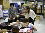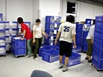 20:50 | チェック作業が続いております。 口数が少なくなる人もいますが、 突然奮起して声を出す人もいます。 積まれたコンテナのあちこちで 発送隊がチェックをくり返しています。 みなさん、メールありがとう!! |