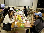 そしてしばし休憩という流れに。 自分たちの姿を伝える テキスト中継を眺める人たち。 まだまだ元気です。 |
