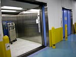 19:50 | ひとあし先に、現場へ戻ります。 夜の大型倉庫って なんだかわくわくしますね。 どうです、この巨大なエレベーター! ボタンのこの業務用な感じ、 グッときませんか? 僕だけですか? |