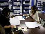 | 発送隊のみんなーがんばれー! ちょっとした空き時間に 読者からの応援メールを読んで! ------------------------------------ 週の山・水曜日の夜をマッタリ堪能しつつ、 テキスト中継を楽しませてもらってます。 (永田さん、昨日からソコハカトナク 楽しみにしておりましたぁ!) ストア・グッズの発送作業が始まって 市内を走る佐川トラックを見かける度に ドキドキしてしまうんです。 早くわたしのところにも届いて欲しい! 届いて欲しいけれど… でもでも、撃沈状態の御疲れ度、 あのぉ〜、あまり無茶しないでくださいね。 届くまでのこのワキワキ感も醍醐味ですし! でもでも、あぁー楽しみ! 今回は、家族分を申し込みました。 ミッちゃん&イクオさんにもプレゼントなのよん♪ 喜んでくれる顔がとても楽しみなのよん♪ ------------------------------------ 発送隊もスタッフも、 喜んでくれる顔が楽しみなのよん♪ おっと、永田ファンからも激励が! ------------------------------------ 永田さんのファンなんですが、 ずっと実況見てたら だんだんだんだん壊れてきてますね。。 それとも熱気に当てられて コーフンしてらっしゃるのかしら。 わたしはTシャツ買ってませんが、 ちょっとほしくなりました。 みなさん、永田さん、がんばれー。 (た) ------------------------------------ では、現場にマイクをもどしまーす! |