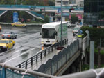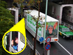バス中の通天閣あかりです。 スクランブル交差点で他の広告バスと遭遇して 運転手さん同志が窓を開けて挨拶をするの巻。 都内には1日で最大で7台の広告バスが走っていて 繁華街ではよく会うそうです。 ちなみに運転手内田さんは大阪好きでカーナビも大阪弁仕様。 気が合います。
