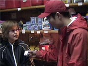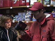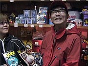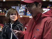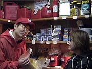 | FIREおすそ分けスペシャル・ロケ、盛り上がりましたねえ! 前日の雪がウソのような日本晴れ。 いやあ、やっぱり神様はぼくの味方なんですねえ。 ![]() 寒い中、集まってくれた人、総勢約30名! フレンド、いやフレンチパーカ着用率高し! みなさん、FIREな胸のうち、熱く語ってくれましたよ。 この模様は、そのうちクイズで出てくると思うので、 お楽しみにね! これでぼくも、ほぼ日知らずの汚名、返上でしょ?ね? 来てくれたみなさん、ほんとどうもありがとね! 「遠いので行けなくって残念」っていう人が多かったし、 これは全国ツアーですかね? うふっ、そしたらぼく、人気出ちゃうなあ。 困ったなあ。スケジュール空くかしら? あー 困った困った。 永久紙ぶくろもフレンチパーカも、 まるでよく分かってなかったという 大失態をやらかしたパンチくん、それでもめげずに オガワさんにインタビューを敢行。 「最近FIREな勢いで売れてるのはナンですか?」 「やっぱりブックカバーですかねえ。 ほぼ日で紹介させていただいたおかげで、 よく売れてますよ」 と、ブックカバーを取りだしたオガワさんにパンチくん、 「へー、これ、ブックカバーなんだ」 「・・・・・・」 ![]() 冷たい視線のオガワさん 「パンチさん、読んでないですね?」 「えっ、あ、本を?」 いやそうじゃないだろう、パンチくん! 連載だよ、「へなちょこ雑貨店」のレ・ン・サ・イ! もうマジボケだよ。 「あーっ、ああ、ああ、これがね」なんて、パンチくん、 頓狂な声を出して、急にわかったふりし始めて。 もうなんか開き直ってるよなあ。 ![]() 憐れむような目のオガワさん こんな調子だから、インタビューも盛り上がってこないの。 ま、オガワさん、もとからクールな人だけどさ。 あわててパンチくん、商品を買う作戦に出ました。 「おすすめをいくつか見せてくださいよ」 オガワさん、しぶしぶという感じながらも、 4つのへなちょこグッズをセレクトしてくれました。 ![]() 「うーん、どれにしようかなあ」 パンチくんが大ゲサに悩みはじめたところで、 今日の問題です! ここをクリック (ウインドウズメディアプレーヤーの映像です。 メディアプレーヤーをまだインストールしてない方は、 こちらへ) オガワさんおすすめのへなちょこグッズ、 悩みに悩んだ末、最終的にパンチくんが購入したものは、 さてどれでしょう?