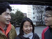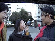 | FIREレポートも、いよいよ残すところ あと2回となってしまいましたね。 残念だなあ名残惜しいなあ。 今日はきのうと打って変わって、 ふんわりした、優しい雰囲気のカップルのご登場ですよ。 え?今日登場してもらう平井さんからメールきてる? 昨日はファイヤ及び御利益のある5円玉を ありがとうございました。 申し遅れました、平井と言います。 日曜日の号外メールで初めてこのことを知り 急遽予定変更し麻布十番へと向かいました。 16時ちょっと前に公園についたのですが ほぼ日パーカを着た人が数人、みんな周りを気にしつつ 微妙な距離を持った妙な空気が漂っていました。 そこへオレンジパーカを着た紳士が会釈をしながら登場し、 「4時からですよねー」の言葉を聞いたとき ほぼ日の奥深さを確認しました。 その後パンチUFOさん登場! お約束の鼻の周りに三角のメイク、連れの彼女が一言 誰? パンチUFOさんもっとがんばって! でもインタビューでのしゃべりはおもしろかったって 言っていました。 それからほぼ日ファイヤと言うからてっきり ほぼ日ステッカーが貼ってあるのかと思った。 (彼女談)次回も何かあれば参加したいと思います。 あ、彼女、ぼくのこと、知らなかったのね。 そう、がんばらないとね… なんかさみしくなっちゃったな。 明日でおわり…なんだよね… 今回ご登場いただくのは、埼玉県からお越しいただいた、 ひらいさんとせきねさんのカップル。 ![]() ひらいさん(左)と、せきねさん(右) ひらいさんがよく行くカフェバー知りあったお二人、 おつき合いを始めて2年ぐらいになるそうです。 「じゃあ、もうそろそろですねえ」と、パンチくん。 「ええ、そろそろですね」とひらいさん。 「ねえ。人の縁も、3年が限度だっていいますもんね」 こらこら、パンチくん!何を言うんだ! お二人とも、最近FIRE足りてないってことなので、 とりあえずキリンFIREと5円玉をおすそ分け。 「じゃあ、彼女にもっとFIREしてほしいことってない?」 「あのー、ねだるのはもっと安いものにしてほしい…」 そういえば、と身を引いてせきねさんを眺めるパンチくん。 「せきねさん、たしかになんか、高級な感じしますもんね。 ほんとにつき合ってんのかな?っていうか。 なんていうか、貧富の差っていうの?」 ![]() いいコート着てますもんね まーたもう。 そんなことばっか言ってると、 しまいには二人とも、怒っちゃうよ。 しかし、ひらいさんは笑みをたたえながら落ち着いてるし、 せきねさんに至っては、インタビューのあいだ中、 ずーっところころ笑いっぱなし。 優しい人たちでよかったねえ、パンチくん。 二人の笑顔で、あたりになごやかFIREがあふれる中、 今日の問題です! ここをクリック (ウインドウズメディアプレーヤーの映像です。 メディアプレーヤーをまだインストールしてない方は、 こちらへ) このあとパンチくんは、せきねさんに、 「彼にもっとFIREしてほしいこと」を質問します。 さて、それはいったいなんだったでしょう? 1.もっと自分と遊んでほしい 2.もっとあかぬけてほしいので、遊び回ってほしい 3.もっと儲かる仕事をしてほしい 4.もっと自分から、いろいろプレゼントしてほしい どっちかが言ってそうなことだなあ。 たぶん分かるよね? 見事、正解の方には抽選でキリンさんより FIRE1ケースをずずいっ、とプレゼントします! 気になる正解と当選者の発表は、 明日またこのコーナーでお伝えするよ! 応募受け付けは終了しました。 たくさんのご応募、ありがとうございました。 明日はいよいよラスト! ガンガン最後のFIRE燃やして応募してね! |