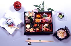 はい、涼しく身軽な格好で 歩いていただきたいです。 とはいえ、新幹線に長い時間揺られてすぐに 暑いなかを歩かれるのはしんどいでしょう。 そこでこの夏、「旅館 銀閣」の料理長が お部屋でひと息ついていただけるような お弁当をあたらしくつくりました。 4名さまよりお承りいたしますよ。 もりだくさんでお得! グループでいらっしゃる方はは、ぜひ。
