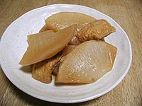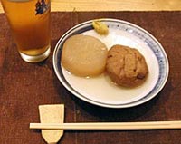 まずは、五条烏丸の近くにある「あんけ」。 お野菜の天ぷらや 小芋のたいたん(煮もののことです)、 アスパラバター焼きなど 野菜のお料理が上手なお店なんですが、 大根のおでん、最っ高です。 細く伸びた入口。京都ならではの風情です。 おでんの大根。しっかり味がついています。