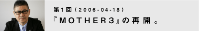 こんにちは。ほぼ日刊イトイ新聞の永田です。 『MOTHER3』の開発者である 糸井重里のインタビューをお届けいたします。 『MOTHER3』の開発が再開されてから3年。 ぼくは、糸井重里が『MOTHER3』に関わる現場の 9割に同行していました。 ですから、このインタビューは、 第三者が疑問をどんどんぶつけていくようなものには なっていないと思います。 けれども、挨拶や雰囲気づくりを抜きにして 核心に近いところで ほんとうのことだけを 飾りなく語ってもらえたのではないかと思います。 12年ぶりの新作の、ライナノーツとして。