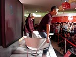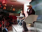 BOSEさんが到着! さっそく会場の展示を見つつ、 darlingと談笑です。 「うっわ〜、これはヤバいっすよね!」 「いや、オレもここへ来て ビックリした!」
