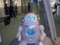 (6)カメラ目線のマリオ。 フューチャーライフスタイルラボでは 「家族のつながり」を新しいコンセプトで 見せてくれたり、こんな、ちょっとQBに似た お話ロボットに会えたりします。