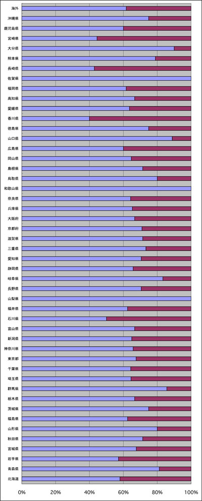 【県別得票率(青=バナナボート/赤=永ちゃん)】