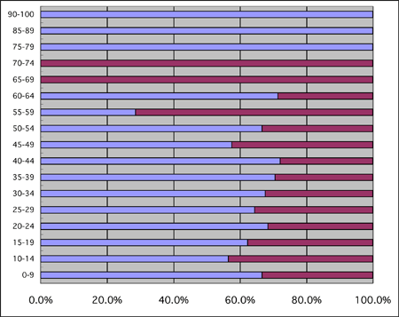 【世代別得票率(青=バナナボート/赤=永ちゃん)】