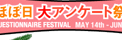ありがとうございました!(2003/06/06) ゴーカ賞品が発表されました!(2003/5/29) 「ほぼ日・大アンケート祭り」第1回〜第8回へ ※アンケートは終了しております。 ありがとうございました。 |