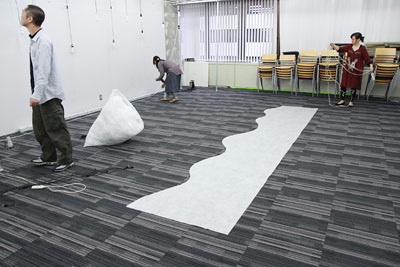 白の不織布をカッターで波形に切って