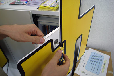 会社の棚にペタッとくっつけたので、