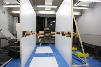 社内の大会議室に屋台をこしらえました。