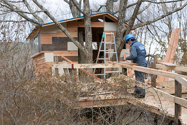 ときどき「ほぼ日」に登場する 妙に凝ったセットや大道具、小道具。 あるいはライブ中継での照明や効果。 イベントや出張店舗におけるディスプレイ。 そういったものは、ほぼ社内で制作しています。 いえ、厳密にいえば、それらのものは、 弊社の工作グループ「山口工務店」が 完全手作業でつくっているのです。 もちろん「山口工務店」は ほんとの工務店じゃありません。 弊社デザイナーの山口、 通称「ぐっさん」がリーダーを務める 工作が大好きな集団の通称です。 現在の主要メンバーは ぐっさん、西田、じゅんぺいの3人。 例年通り、今年もつくったものを 振り返ってみたいと思います。 例によって、意味なくコント仕立てですが、 なんと、今回で、最終回?!