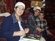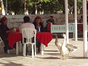 | レポート#18 そんなこと今から考えるな、何とかなるから。 11/7 晴れ 今日も午前中はイボットとドライブ。 ブハラ・ハーン国最後のハーン、アリムが作らせた夏の宮殿 「ストライ・マヒ・ホサ」へ向かう。 イタリアとロシアの建築家に設計させた、 東西折衷様式の贅沢きまわりない宮殿だ。 宮殿の裏手にはハーレムと水浴用の池がある。 「ハーンは水浴びをするヤングレディスを テラスから眺めて、気に入った娘にりんごを投げて その夜のお相手に呼んだのだよ。」 「それは知ってる。ガイドブックに書いてあった。」 志村けんの演ずるバカ殿にやらせてみたいような所業だ。 「そのアリムってのはどんなハーンだったんだい? その時代はもうロシアに併合されていたんだろ? こんなものに大金を使っているぐらいだから ろくなモンじゃないだろうけれど。」 「若い頃はロシアに留学していてね、 ツァーリ(ロシア皇帝)とはうまくやっていたんだ。 ところがロシア革命が起きただろ、 共産主義者がここを見てごらん? すぐに追い出されたのさ。」 結局この豪華なハーレムは 7年間しか使われなかったそうだ。 ![]() 検問所(沢山あります) ストレイ・マヒ・ホサには一度来ている。 「そのころより公開部分が増えてキレイになっているよ。」 とイボットにいわれて来てみたのだが、 どうやらそれは勘違いのようだった。 「この池、木の葉が浮いていて ずいぶんと汚い感じがするなあ。 高い入場料を取るくせにケシカラン。 それとも予算が足りないのかねえ?」 「一昨年だったかな、アラブが補修費用に 大金を寄付するってニュースで見たよ。 たしかトルコもお金を出してくれてるはずだ。」 その金は何処にいったのだろうか? 口に出すのもはばかれるヤボな質問だ。 言えるのは、この国の民衆は昔も今も 良き指導者には恵まれていない、ということだけだ。 「もう帰ろうか、昼飯でもどうだい?」 「いや、また病院にいかなきゃならないんだ。 食事とか着替えを持ってね。」 昼飯時から飲んでいたウオッカもやめているそうだ。 「ガールフレンドはどうした? たくさんいただろ。」と 冷やかしてみた。 「そうだったなあ、あの頃は。トシ、僕は家族を愛してる。 いまはそれで十分なんだ。」 そんなわけで一人旧市街地の迷路を歩いていた。 すると旅行代理店の看板が目入った。 ビザが10日までだからキルギス行きのチケットを 買っておいたほうが良いかも知れない。 そう思ってそのオフィスに入った。 僕の希望する11日には ウズベキスタン航空はフライトが無かったが、 キルギス航空にはあるそうだ。 「空港の窓口に電話しておきました。 すぐ行ってください。」 当初はそのオフィスでサッとチケットを買い、 午後いっぱいを街歩きに費やそうと思っていたのだが、 こうなってはしかたがない。 オフィスの若い男と一緒に出かけることになった。 「あのオフィスではどれぐらい働いてるの?」 「半年ぐらいですね、まだ学生なんですよ。」 「コットンキャンペーンには行かなかったのかい。」 ウズベクでは綿花の収穫に学生達の手を借りる。 これをコットンキャンペーンという。 時には2ヶ月に渡って厳しい環境のもと、 辛い合宿生活を強いられるのである。 ブハラではサマルカンドよりも終わりが遅く、 学校の授業がようやく再開される頃なのだ。 「僕はうまく逃げました。」 「どうやって?」 「担当者に賄賂をつかませたんですよ。 50ドルの予算を立ててたんですけど、 ティーセットとミキサーを要求されたので 25ドルですみました。 去年は友達の親父がブハラの情報局長官だったので タダだったんですがね。」 要領のいい奴はどこにでもいるものだ。 ![]() チャイハナにて バスがなかなか来ないので、 タクシーに乗って空港に行った。 ところが、結局その日にはフライトが無いことが判明する。 まったくの無駄足だった。これも旅だ。 のんびり街を歩く時間は無くなってしまった。 失敗の原因は、先行きを心配してしまったことにある。 心のどこかで 「そんなこと今から考えるな、何とかなるから。」と ささやく声が聞こえたのだが。 マダマダ甘い。 直感を信じきれないときにこうゆうコトが起きる。 K君とは5時に待ち合わせていたのだが、 3時前にはハウズを通りかかるとばったり出会う。 カモ、いや、救うべき孤独な旅人を探しているのだ。 しかしこのご時世に旅行者などはめったにいない。 最悪の客である僕を又しつこく家に誘う。 いい奴なんですけどね。 最近稼ぎがないので、 奥さんに尻をたたかれているんだろうな。 待ち合わせの時刻にリャビハウズに戻り、 まずムザファールの家に立ち寄った。 写真のお礼にと、習作をもらう。 「この中から2枚好きなのを持っていってよ。」と 選ばせてくれる。 ![]() ムザファールの家族 彼本来の作品はとても重く、はっきりいって暗い。 ブハラは長い歴史を持つ古い都だ。 歴史の中に血は流れ、 さまざまな念が土地に染み付いている。 その