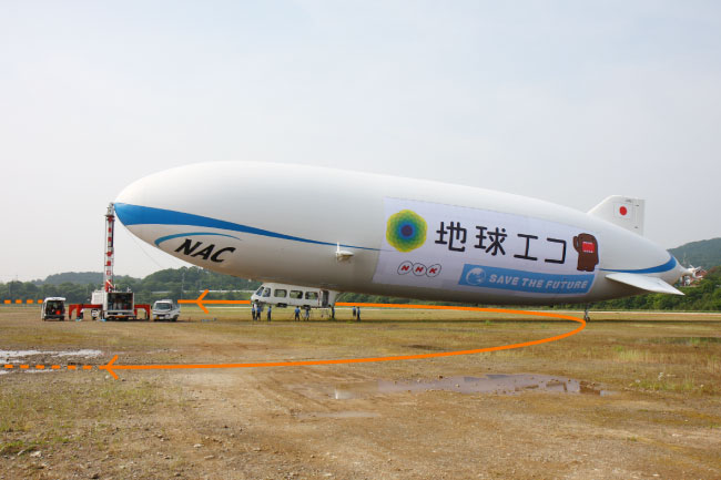 係留している状態です。ですので、風が吹いたら、マスト車を中心に動くんです。