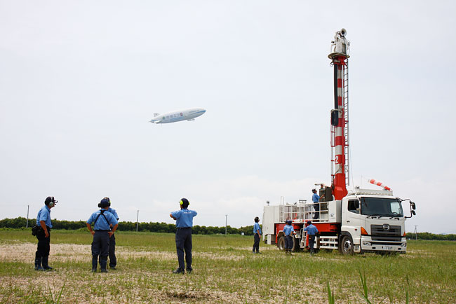 見た目は同じなんですが、このマスト車は、前もってここで待っていた2号車なんです。