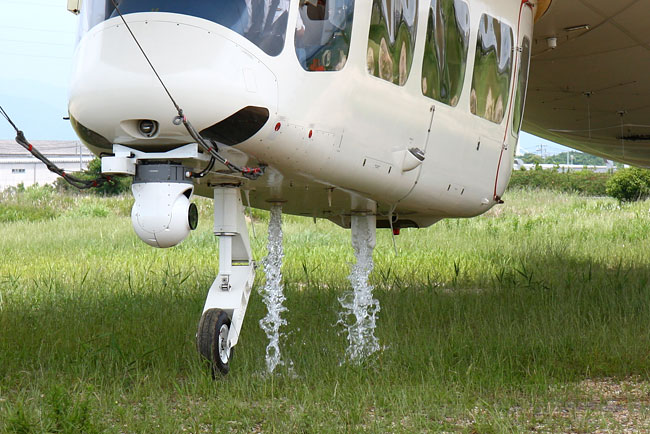 人が乗ったので、おもりの水を捨てて重さを調整しているんです。