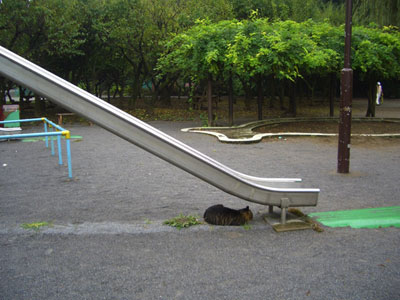 「崖の下のポニョ」と「すべり台の下の猫」! |
