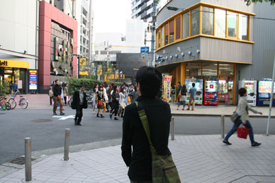 土曜日の梅田を歩く天久さん。ロフトが見えてきました。