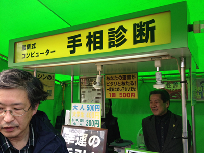 | あのうっすら妖しい笑顔を体得しておるとは、 相当の手練れよ。 いったいどういう経歴を経てこの商売を…? 手相より彼の生い立ちの方が気になるぞい! |