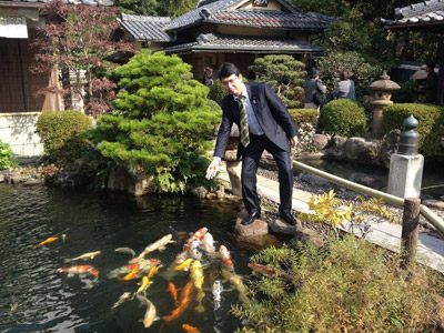 | 手のかたちだけみると、 鯉を紹介してるようにも見えるな。 |