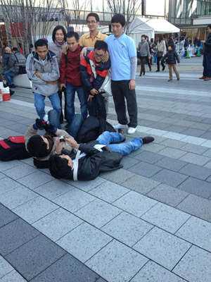 | 世間の目にとらわれないこの行動力。 いまの日本に足りんのはこのバイタリティじゃ。 日本人もどんどん海外に出て道に寝そべるべき! |