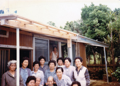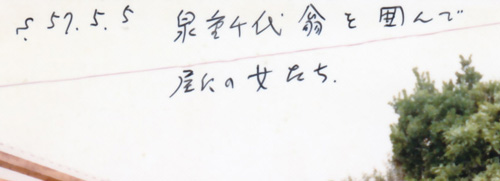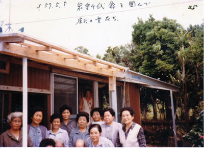 | はい。 お便りによりますとこれは 投稿者さまの祖父祖母さまが 徳之島に旅行されたとき、 重千代翁宅を訪ねられて撮った記念写真だそうです。 ちなみに当時は重千代翁のご自宅が 地元の観光名所だったそうです。 |
