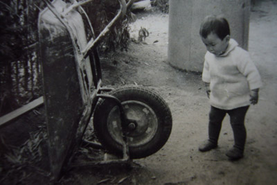 | 熱心に一輪車のタイヤを見つめているようじゃが‥‥ |