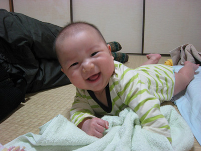 | この福々しい笑顔。 きっと将来は巨万の富を築き、 自社ビルの正面に自分の銅像を建てる 成功者になることじゃろう。 |