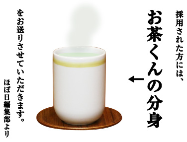 | お寄せいただいた作品は大切にキープしております。 採用された方にはもれなく 私の分身をプレゼントいたしております。 ツイッターで投稿された方には こちらからツイッターを通して メッセージを返信致しますが、 もし連絡がない場合は当企画までご連絡ください。 それではみなさまの日曜に幸アレ!(茶柱) |