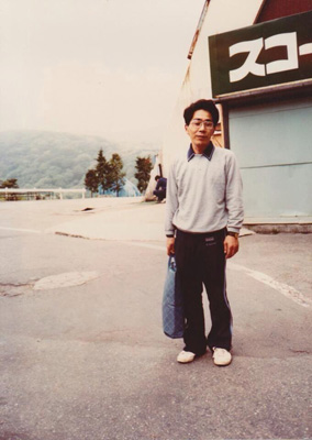 | 投稿者さまの先生のようです。 当時(1984年)移動教室先で撮った一枚ですが、 夜行列車で行ったので、 到着したときにはすでに疲れ切っていたそうです。 |
