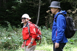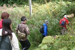 新井さんが、 ふと立ち止まりました。 「このあたりが森の入り口ですね」