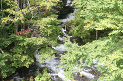 橋の上から見えたのは みごとな滝のある風景。