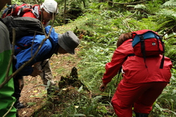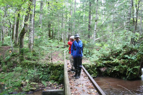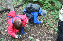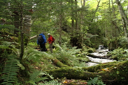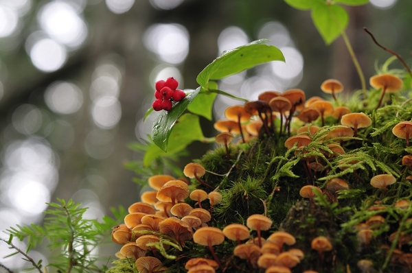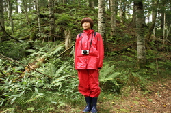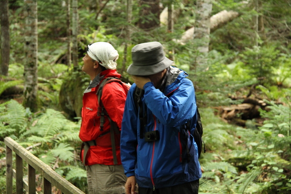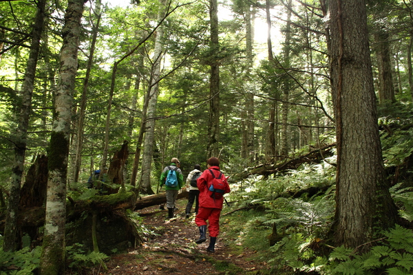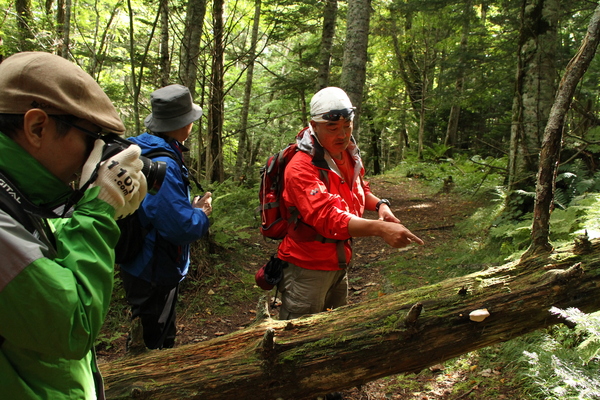 森の入り口からすこし歩いただけなのに、 そこはもう、原生林の風景でした。 様々な植物、様々な菌類、重く澄んだ空気、木々の音。 そういうものたちが、もう、一気に、 どどーっとわれわれを飲み込みます。