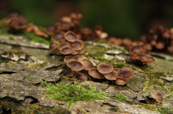 この倒木は、「宝庫」っぽかったです。 いろいろな部分に、 いろいろなキノコが生えています。