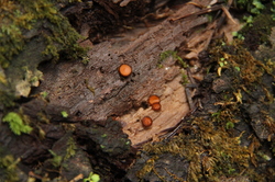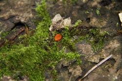 まさに、名は体を表す、 というネーミング。 つまり、 荒い毛が生えていて、小さくて、 紅色で、茶碗のようなきのこ!