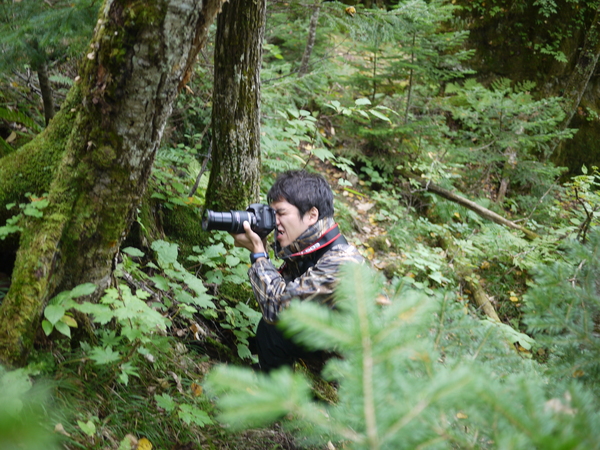 迷彩柄の服を着ているのですが、 迷彩の底力を見たね。 なじんちゃってるもの、森に。 かっちょいぃーーー!