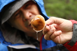 ついに、そのときがやってきます。 「きのこ狩り」にやってきて、 最初にみつけた、食べて美味しいきのこは‥‥? そして、唐突にはじまる「よろこびの舞い」。 阿寒の森に、ふしぎな音が響き渡ります。 カタカタカタカタカタ‥‥。