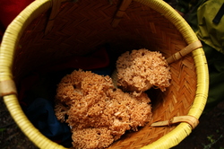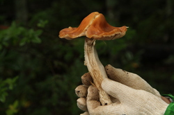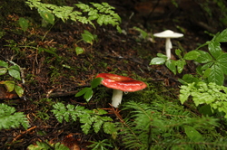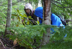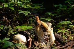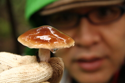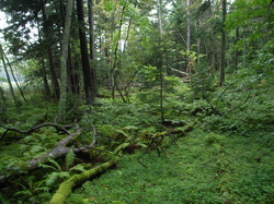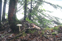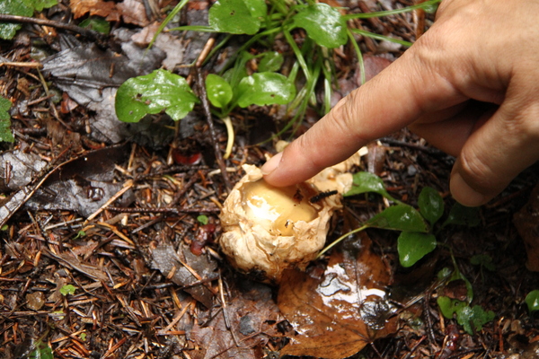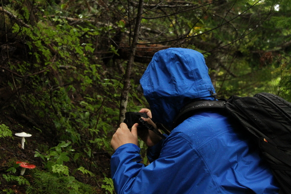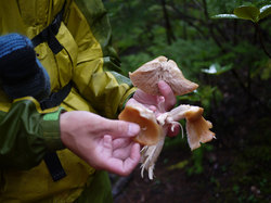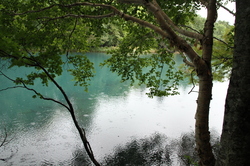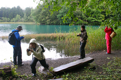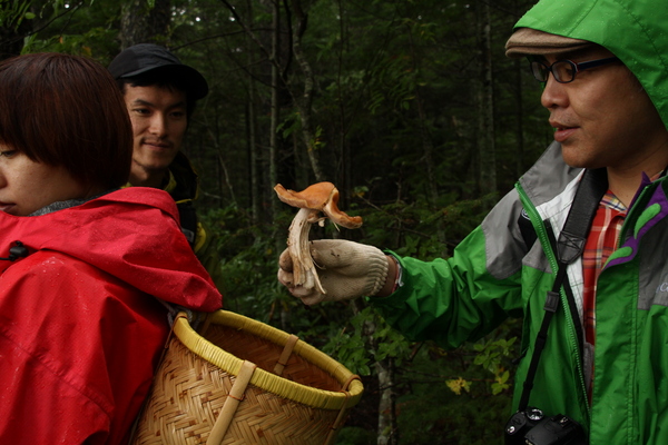 しっとりとした森を歩き続けたわれわれは、 やがて視界の開けた場所へとたどり着きました。 オンネトー。 今回の森歩きの、目的地です。 原生林に囲まれた神秘的な湖に沿って、 われらはまたすこし、きのこを探して歩きます。