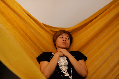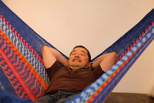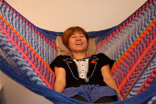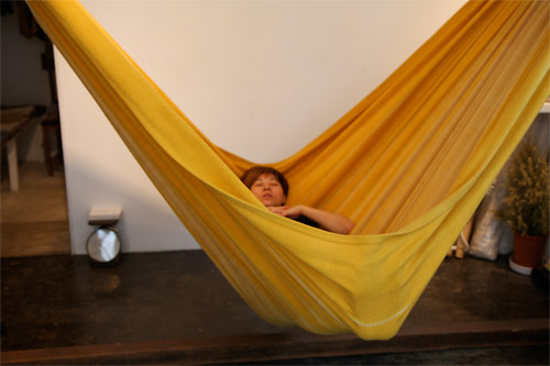ハンモックというものは、バナナみたいになって、 タテ向きに寝ると思ってた。 |