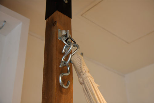 フックがつけられなくても、 ハンモックスタンドがあれば使えるし、 もちろん野外も最高だし。 方法はいろいろありましたよね。 |