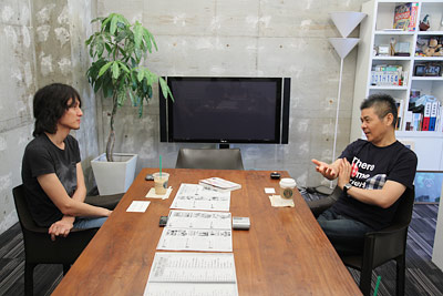 | 加地 | はい、意識的にです。 狭い会議室で、必ずみんなで スイーツを食べながら会議します。 ADが「今日はミッドタウンの○○のです」 なんていって、買ってくるんです。 「これ、おいしいね」 「そういえばあれ、おもしろかったね」 なんて言いながら、会議というか雑談というか、 はじめていきます。 例えば「ガンダム芸人」のときの ツッチー(土田晃之)の話になったとき、誰かが 「そういえばツッチーがこの前 こんなこと言ってたよ」 なんて言い出します。 そのまま、ツッチーが言った企画の話になって 「あ、1コできちゃったな」 という具合になります。 話がちゃんと流れるように みんなで和気あいあいやる、 そういう雰囲気作りは大切だと思っています。 |