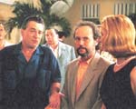 | 『アナライズ・ミーはこんな映画だ』 そういえば、宣伝部員を大々的に募集しながら、 ここまで肝心の内容に触れてきませんでした。 映画を見終わるまでパンフレットは読まないという人や、 「ネタバレ」になるからストーリーは言うなという人が、 きっといるだろうと思って、遠慮していたのです。 しかし、それを言ってたら、なにもできないですよね。 いちおう書いて紹介しておいて、 読むか読まないは、読者の選択しだいというふうに、 しておけばいいじゃないかと判断しました。 読んだら、ますます興味が湧いてきたということに、 なるといいんですけどねぇ・・・。 一般公開は「11月6日」とちょっと先です。 知っておいても忘れちゃうかもしれませんし。 ここでザっと映画のストーリー、 スタッフ、キャストロールを一挙紹介しちゃいます。 ※アナライズ・ミー劇場用パンフレットから抜粋。 ストレスのたまった現代人の心を解放感で満たし、 ハートフルな笑いで包み込む超話題作!! 全米No.1大ヒット! 堂々1億ドル突破! 10週連続トップ10入り! リピーター続出! アメリカ2000万人以上の圧倒的共感を得て、 いよいよ、日本上陸!! ●Story 父の跡を継ぎ、ニューヨークで絶大なる権力を握る マフィアのボス、ポール・ヴィッティ (ロバート・デ・ニーロ)は、最近、奇妙な発作に 悩まされていた。緊張した場所に出ると、突然、心臓発作を 起こし、息が苦しくなる。病院での診断の結果は ストレスからくる“パニック症候群”。 やがてポールはボディーガード、ジェリー (ジョー・ヴィテレッリ)の紹介で、精神分析医の ベン・ソボル(ビリー・クリスタル)のもとに 人目を忍びつつ通うようになる。 ベンがヴィッティのファミリーと遭遇したのは、 ある車の事故だった。渋滞した道路でジェリーの車に 追突したベンは、保険の話を切り出すが、 ジェリーは特に気にする様子もなく立ち去った。 しかし、ボスのポールに精神分析医が必要だと知り、 ベンのオフィスにやって来た。 有名なギャングの一行を見て、 恐怖のあまり震え上がるベン。 保険の件で脅されるのかと思いきや、ポールの話を聞いて びっくり。彼はストレスによる心の病にかかっていた。 2週間後のマフィアの総会までに病気を治して欲しいと ベンの前で泣き出すポール。それは、ベンには悪夢のような 日々の始まりだった。 著名な精神分析医として都心で派手な生活を送る父とは 対照的に、郊外で退屈な患者たちを相手に 地味に暮らしてきたベン。バツイチの彼には十代の息子 マイケル(カイル・サビヒー)がいて、 テレビ・レポーターの婚約者ローラ(リサ・クードロ)との 結婚も間近。そんな彼にとって、ポールはこれまでになく 手ごわい患者に思えた。 ローラとの結婚式のため、マイアミでの休暇に向かった ベンだったが、セラピーを必要とするポールのファミリーは 旅先にもやってきた。 夜中にいきなりホテルの寝室に現われ、 ベンを部屋から連れ出すジェリー。 愛人のベッドでお勤めをはたせなかったことに 自信をなくし、ベンの前で大声で泣き出すポール。 彼はライバルのシンドーネ(チャズ・パルミンテリ)に 命を狙われ、常に緊張した状態にさらされている。 ベンはポールの集中治療をしぶしぶ引き受ける。 ベンが有名なマフィアのボスを治療していると知り 不吉な予感に襲われるローラ。予感は的中し、 ベンとの結婚式の最中にマフィアの殺し合いが起き、 式は台なしになる。 ベンを追っているのはポールの一行だけではなかった。 マフィアの事件を調査中のFBIは ベンに強制的な協力を要請し、彼は隠しマイクをつけて ポールのもとに向かう。 ベンの異変に気づいたファミリーは秘密を握るベンを 殺すようポールに命じ、隠しマイクを奪いとろうとするが、 患者の病気を優先するベンはFBIの要請にそむき、 すでにマイクを処分。ベンはポールの心の謎に 迫ろうとする。やがて、ポールの父親が幼い彼の目の前で 殺害されたことを知り、それがトラウマとなって、 ポールの心にのしかかっていたことが分かる。 ベンとローラの二度目の結婚式が教会で行なわれるが、 再びジェリーが顔を出し、ポールを無理やりその場から 連れ去った。調子を崩したポールのかわりに相談役 (コンシリエーリ)としてマフィアの総会に参加して欲しい と言われるベン。ギャング・スーツを着て 会場に乗り込んだベンは、命がけのぶっそうな会合に 挑んだ。荒っぽい言葉を連発して会場をわかせるベン。 と、そこへポールが現われ、ヤクザから足を洗いたい、 と衝撃の告白を始める。その場を去ろうとした ポールの一行に銃を向けるシンドーネのファミリー。 その時会場は警察に包囲され、 ギャングたちは捕らえられる。 18か月の刑を言い渡され、刑務所暮らしを送るポール。 面会に行ったベンの前には元気な姿を見せる。 自分の心の病を乗り越えたポールの顔は晴々としていた。 再び彼のセラピーを引き受ける約束をするポール。