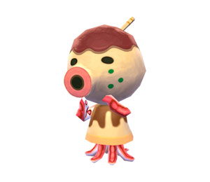 | いえ‥‥「たこ焼き」なんです。 「どうぶつじゃないやん」っていう。 『とびだせ どうぶつの森』のトップページにも ときどき出てくるので、見てみてください。 |