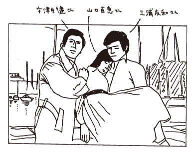 「武井さん、大学病院へ行きましょう」 出社するなり西本が言いました。 「ぼくは先生じゃないし、あたしって誰ですか」 そりゃもちろん『赤い疑惑』の百恵ちゃんだけど。 |