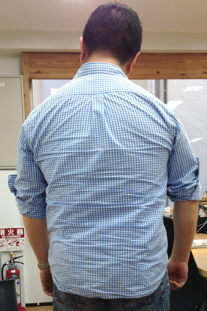 ▲山下の背中もぱっつんぱっつん! これが中年のあかし?